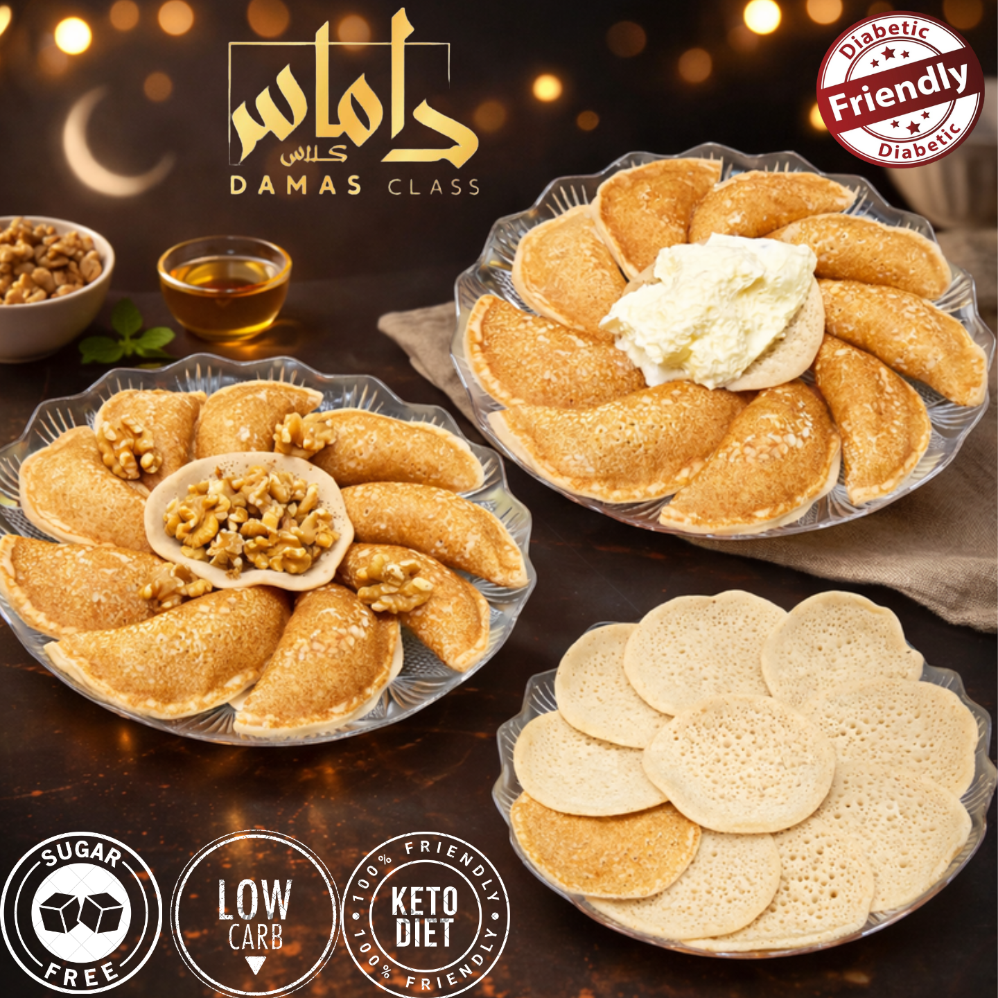 تشكيلة غنية من القشطة الكيتو والحلويات الكريمية، تشمل وردات القشطة والحلاوة بالجبن،...